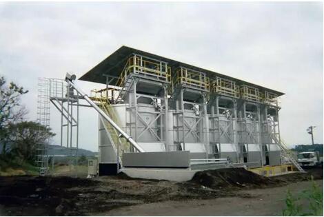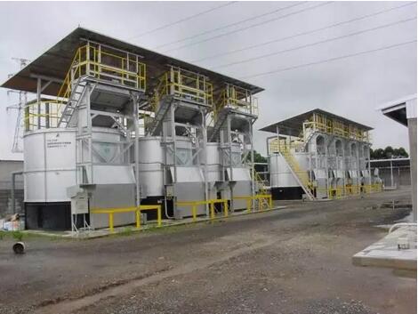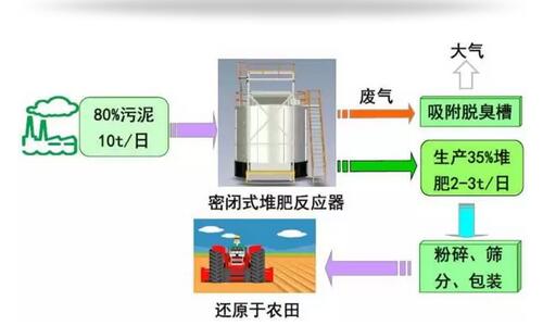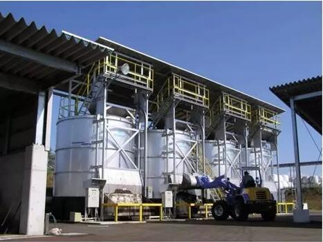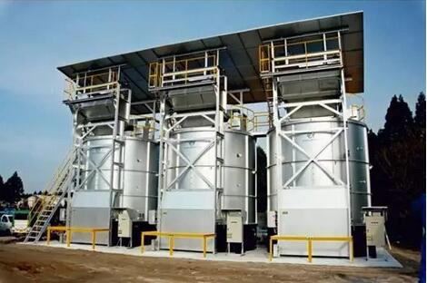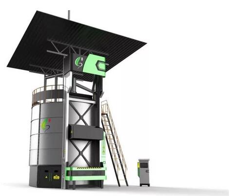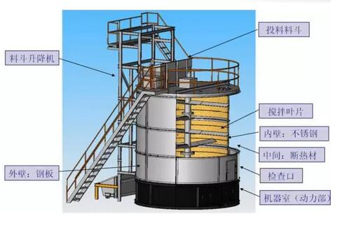 密閉式筒倉反應(yīng)器工作時,從進料口投入養(yǎng)殖糞污或者污泥和少量堆肥接種劑,通過接種特定微生物來加速發(fā)酵進程。物料在驅(qū)動機構(gòu)攪拌槳葉的攪動下,在筒倉內(nèi)形成連續(xù)攪動的狀態(tài),同時設(shè)備的曝氣和熱回收裝置為曝氣槳葉提供干燥熱空氣,在槳葉后側(cè)形成均勻的熱空氣空間,與物料充分接觸供氧、傳熱、除濕。保持物料充足的供氧條件和受熱的均勻度。整個好氧發(fā)酵、去水過程中,曝氣和排氣系統(tǒng)連續(xù)不斷為物料提供新鮮空氣,滿足反應(yīng)器內(nèi)好氧發(fā)酵工藝要求。筒倉反應(yīng)器內(nèi)部有可以輸送空氣和進行攪拌的槳葉。在好氧條件下,通過好氧菌的作用,分解有機廢棄物,利用有機廢棄物的分解熱蒸發(fā)掉物料中的水分,使養(yǎng)殖糞污變?yōu)橛袡C肥料。好氧發(fā)酵處理后物料的水分降到 35%及以下,發(fā)酵時的溫度可達到 65-75℃,可以保證殺死各種病原菌和雜草的種子等,可生產(chǎn)出安全的、穩(wěn)定的有機肥料產(chǎn)品。反應(yīng)器頂部安裝有臭氣收集管,能很密閉地進行臭氣的收集, 收集的氣體進行熱回收、脫臭處理,最后達標排空。