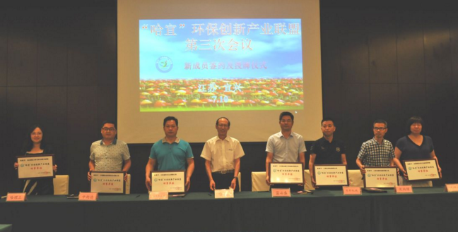 會(huì)上,郭海娟同志還對(duì)去年以來(lái)“哈宜”聯(lián)盟成員變動(dòng)情況和2016年度聯(lián)盟會(huì)費(fèi)使用情況作了說(shuō)明,經(jīng)過(guò)認(rèn)真的審議,與會(huì)代表對(duì)此表示認(rèn)同,并歡迎哈爾濱理工大學(xué)、沈陽(yáng)師范大學(xué)、中朗德水務(wù)環(huán)境科技公司、江蘇藍(lán)必盛化工、江蘇優(yōu)納特機(jī)械、江蘇溢陽(yáng)水工業(yè)、江蘇東邦機(jī)械7家單位為“哈宜”聯(lián)盟新成員,簽署聯(lián)盟協(xié)議并授牌。